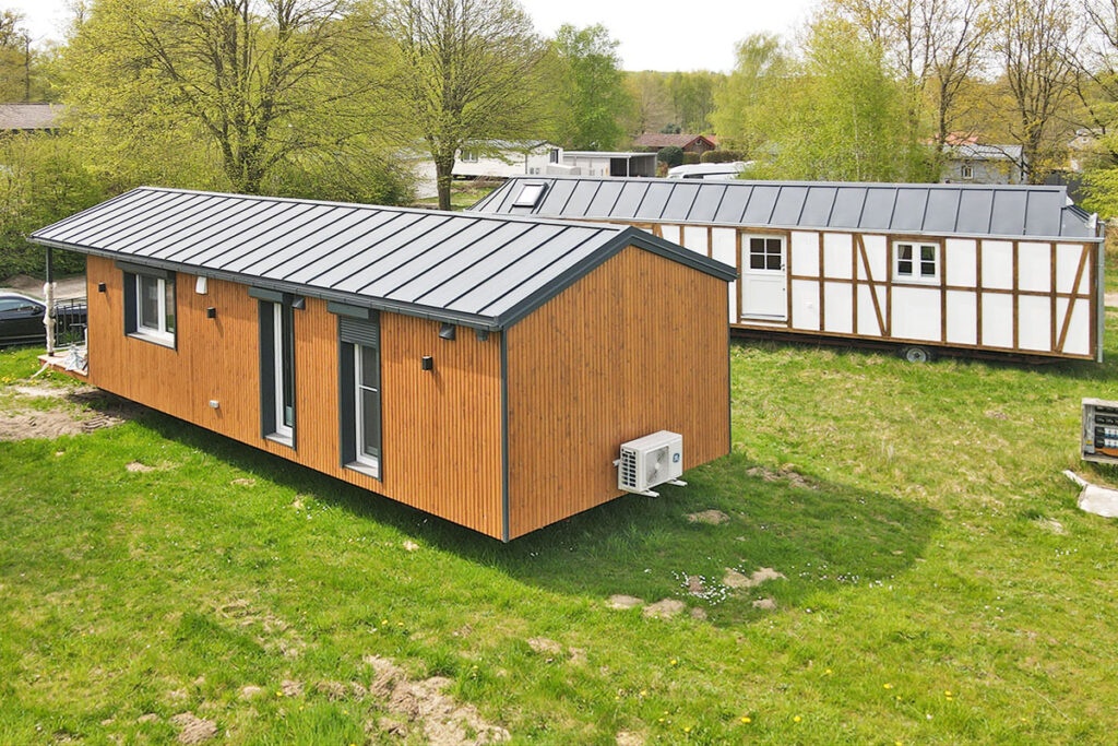 Wohngebäude – wie mobile Häuser heute bürokratisch bezeichnet werden – sind wahre Schwergewichte und das Rangieren kann bereits bei leicht unebener Strecke zu einer echten Herkules-Aufgabe ausarten. Deshalb verfügen Oberklasse-Modelle stets über drei Achsen – zwei hinten und vorne ein Drehschemel -, um das Schadensrisiko bei der Verlegung minimieren zu können. - 2 Heizungssysteme zur Auswahl. Neben einem serienmäßigen elektronisch gesteuerten Pelletofen, der Ihnen das wohlige Kaminfeuer ins eigene Heim bringt (bis zu 85 % weniger CO2-Ausstoß ggü. Gasheizungen), bieten wir ergänzend auch ein Wärmepumpen-System an, das nicht nur heizen sondern auch kühlen kann. Und wer es besonders gemütlich haben möchte, greift auf die Infrarot-Fußbodenheizung zurück. Das macht ein Rolling Bungalow de Luxe zu einem der nachhaltigsten Minihäuser überhaupt auf dem Markt.